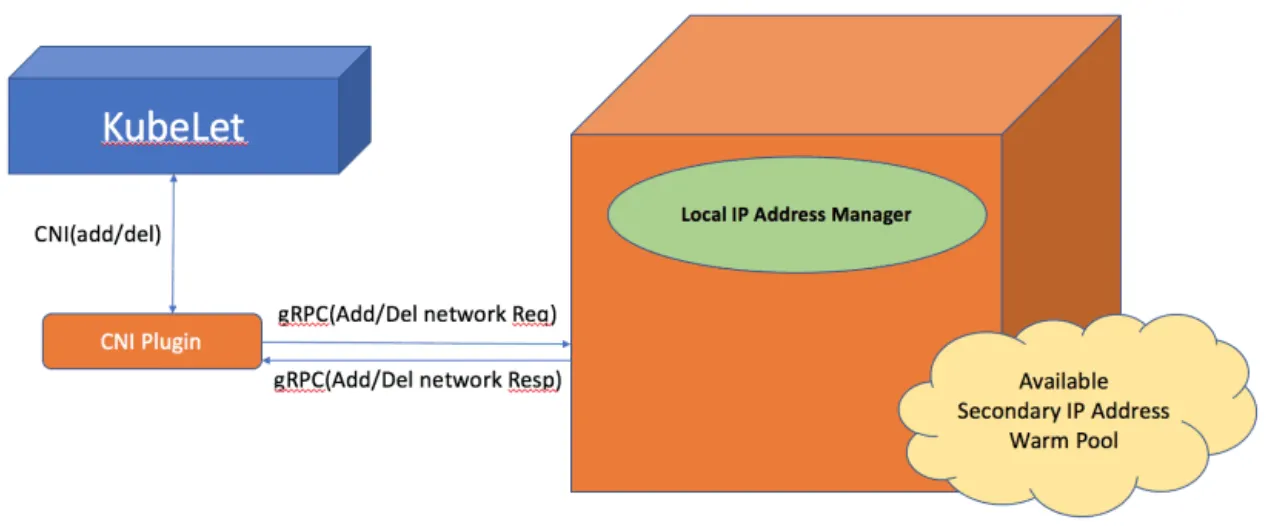 kubelet 프로세스는 L-IPAM에 해당 pod를 네트워크에 추가하라는 request를 전달