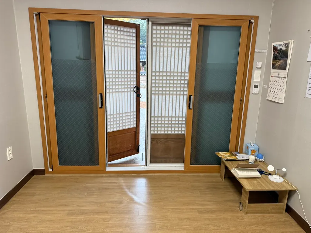 내가 쓴 독방. 방안의 물품이라곤 저 탁자와 매트리스, 이불, 배개가 전부다. 이외에 선풍기가 있는걸 봐선 에어컨은 없었던 듯(기억에 없다). 하지만 개별 난방이다. 꽤 따뜻하다.