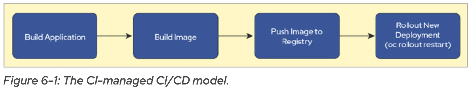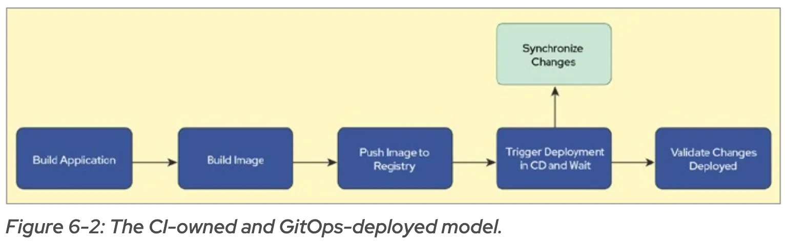 CI가 전체를 관장하지만 배포에서는 GitOps Controller를 사용하는 모델