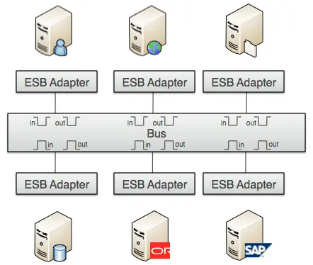 ESB(Enterprise Service Bus) : SOA가 취한 약결합 기반의 서비스 간 연동 시스템으로 일종의 EAI 업그레이드 버전. EAI 의 hub and spoke 구조와는 달리 메시지 변환 및 라우팅 등을 engine 자체가 아닌 adapter에서 수행함으로 약결합과 확장성 장점 모두를 취함(참조). 순수하게 서비스 간 연동 관점으로 보았을 때, Apache Kafka는 ESB 가 취한 주요 약결합의 구현 개념인 event driven(e.g. EDA) message oriented(e.g. MOM)을 취한 ESB 의 사실 상 계승자일 수도