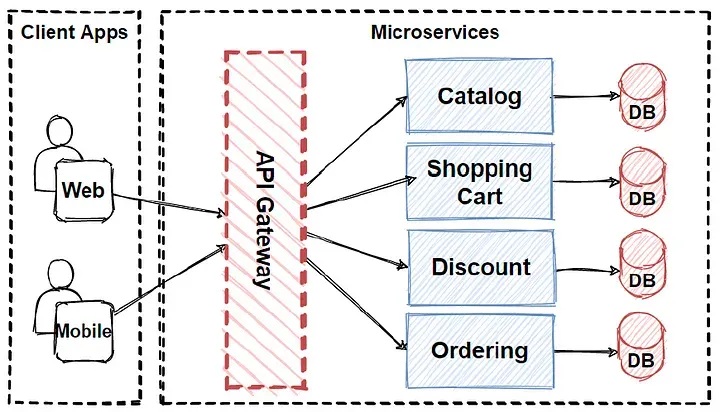 API Gateway Pattern. 이미지 출처 : https://medium.com/design-microservices-architecture-with-patterns/api-gateway-pattern-8ed0ddfce9df