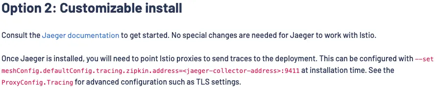 address: jaeger-collector.istio-system.svc:9411 # jaeger collector address