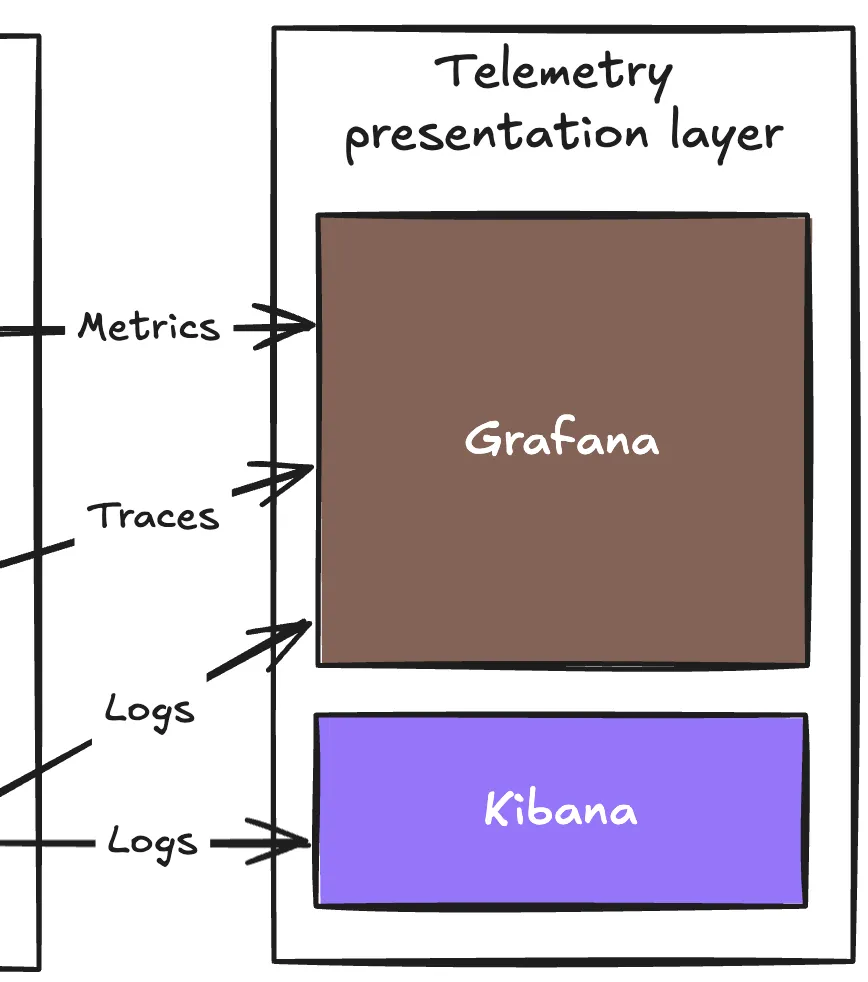 Telemetry 조회 계층으로 사실 Grafana 하나로 족한데, Persistence Layer에 Elasticsearch를 넣었기에 Kibana는 일종의 꼽사리(?)로 넣었다.