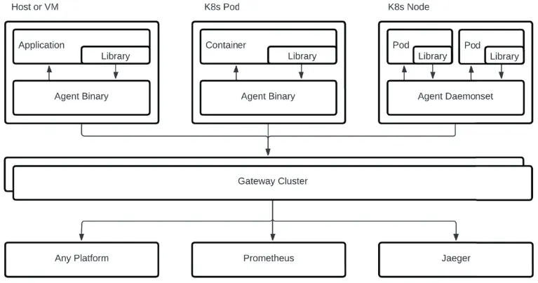 일반적으로는 (Kubernetes 환경의 경우) DaemonSet (agent 모드)로 collector를 두어 각 노드에 해당하는 모든 signal을 수집하고, 수집된 모든 signal을 gateway 모드(e.g. Deployment)의 단일 collector로 보내는 아키텍처를 사용하는 듯 보이며, 특히 아래 OpenTelemetry 서적은 이를 가장 좋은 아키텍처로 논한다. 좋은 이유로 agent와 gateway 모드의 장점 모두를 취할 있음과 동시에 데이터에 대한 유연성과 이식성을 갖추는 것을 꼽고 있다.