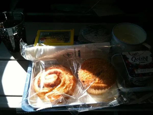이거 기내식이 뭐이리 부실해! 아침식사라고 넘 거져먹는디