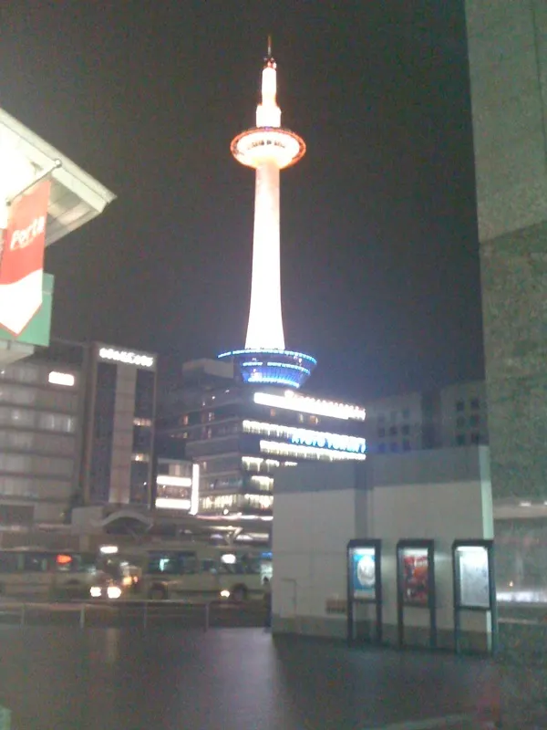 교토역 내부와 여기서 보이는 교토 타워 밤풍경
