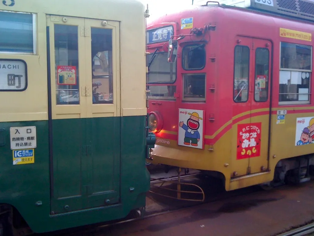 나가사키에는 전철 대신 트램이 다닌다. 전차나 역 모두 조낸 귀엽다. 전차는 60년대의 모습과 최신의 모습 둘다 동일 레일에서 운행된다는