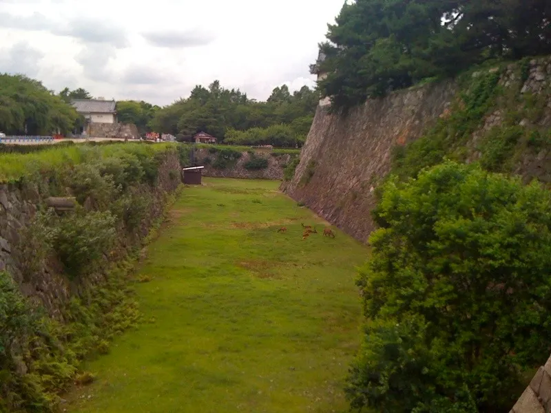아래 해자 사진에 사슴이 있다. 물 빼고 여기에 사슴을 풀다니, 머리 좋다!!