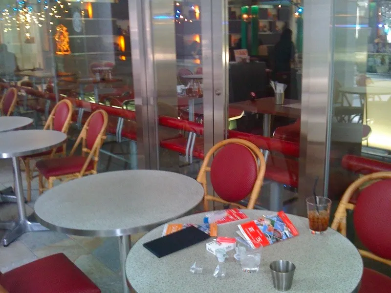 도쿄오니 인포센터(TIC) 가이드의 영어 발음부터 다르네. 사진은 TIC에 붙은 카페. 여기직원도 영어기본. 담배땜시 밖에서 여행스케줄링 중.