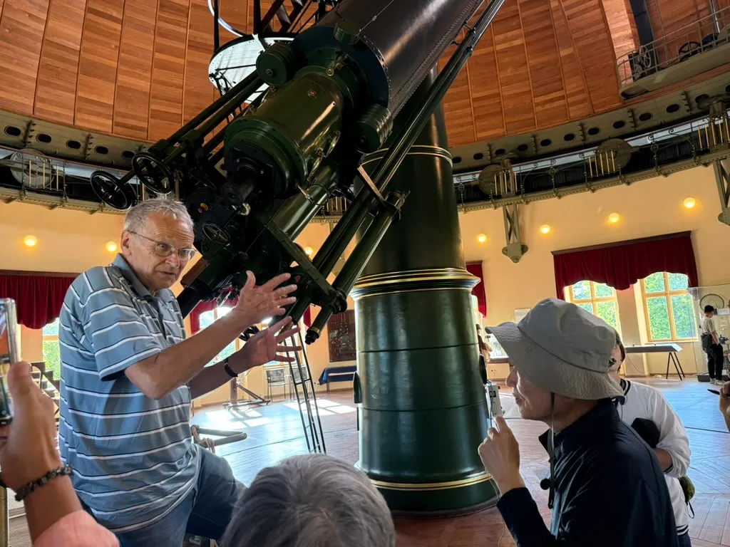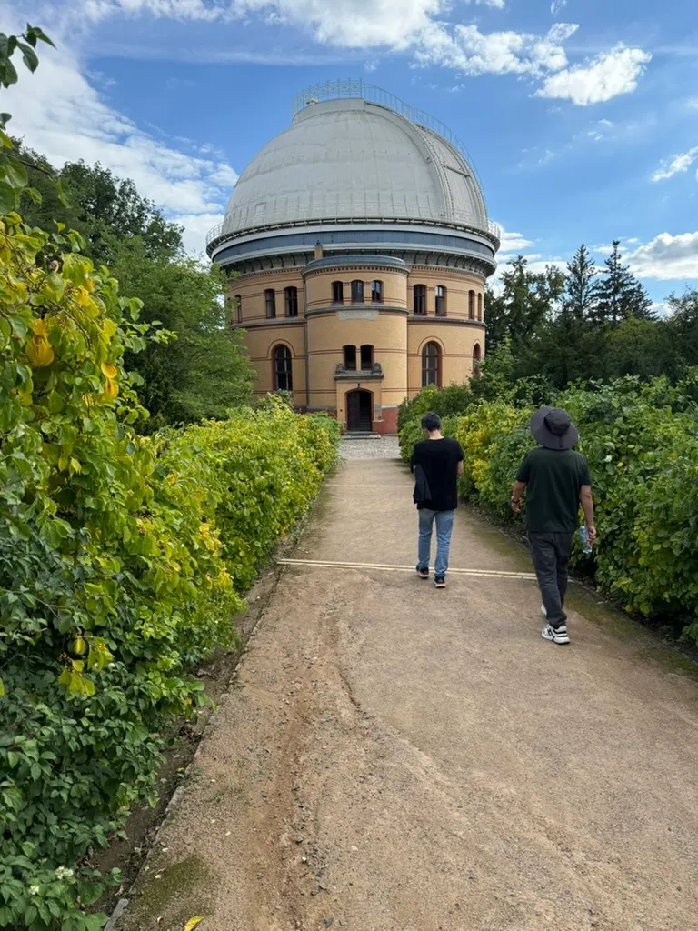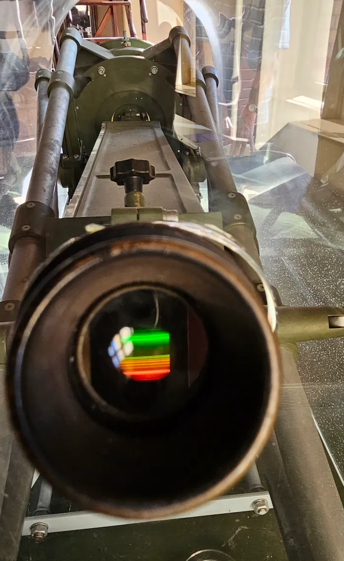 이동 중에 찍은 포츠담 대형 굴절 망원경 전경. 꽤나 오래된 망원경임이 외양에 드러난다.