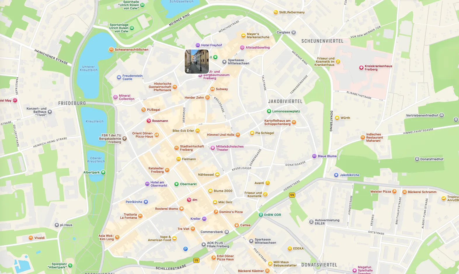 사진 흔적에서 보다시피 프라이베르크는 말 그대로 찍고 바이바이. 이 도시 지도가 재밌는데 동그랗게 녹지로 둘러싸여있다. 필경 이 녹지는 옛날엔 성곽과 해자였을 듯.