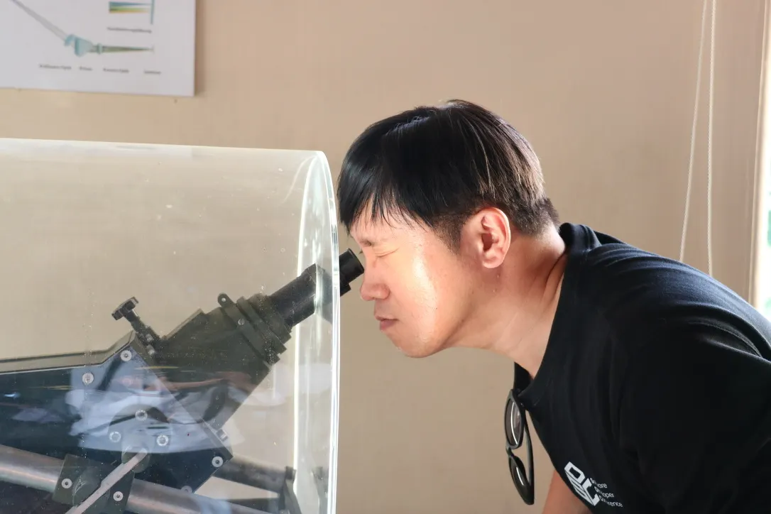 분광기를 통해 가시광선 분석에 매진하는 천체 과학자님의 모습… 은 농담이고 구경하는 내 모습. 박사님의 사모님 작품.