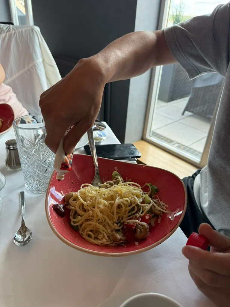 오일 스파게티에 고추장을 비벼먹는 애국심…을 시전하는 점심 멤버의 모습. 나와 앞에 앉았던 여자분만 아니 그랬다. 난 우아한 사람이기에 이건 있을 수 없는 일이다.