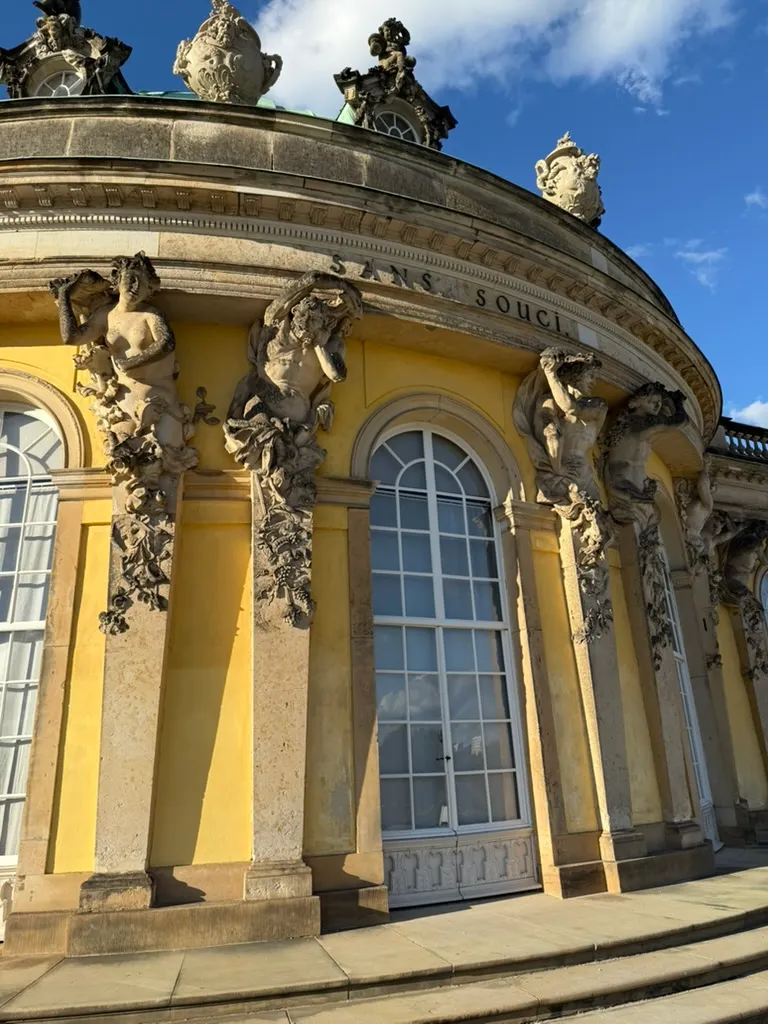 어쨌건 상수시 궁전(Schloss Sanssouci)은 대왕 칭호를 받는 프로이센의 프리드리히 2세가 만든 여름 별궁으로, 프랑스어로 ‘근심이 없다(Sans souci)’란 뜻이란다. 계몽 군주였던 그는 여기서 볼테르랑 놀고 궁전 정원의 포도밭 계단에 본인의 반려견들 곁에 묻어달라는 유언을 남길 정도로 이곳을 사랑했다고. 궁전 끝자락에 그의 묘지가 있다는데 난 못봤다(다들 그래서 저 끝에 모여있었던건가).