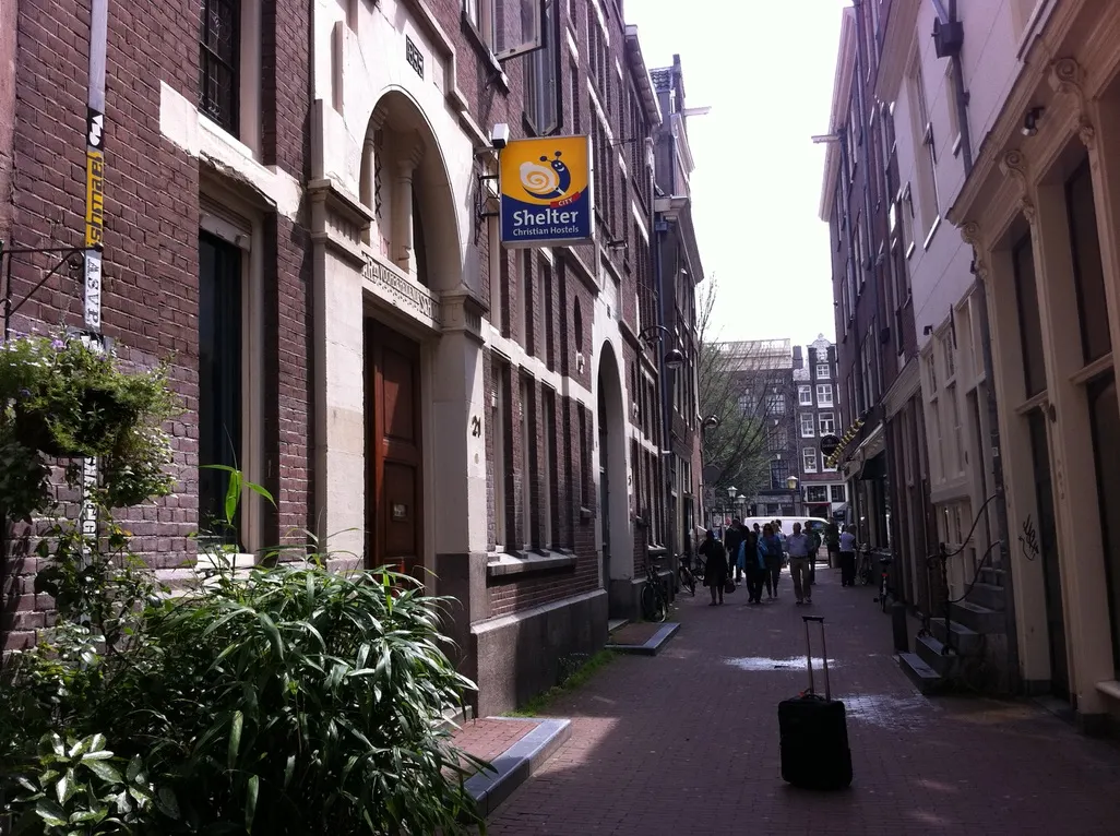 예전 배낭 여행 때의 암스테르담 내 골목. 역시나 붉은 벽돌이었네. 왼편에 호스텔 간판이 있는데 여기가 당시 머물렀던 곳이다. 호스텔 이름에 Christian이 붙었음에도, 이 건물 반대편에는 빨간 등의 창문에 헐벗은 아가씨가 앉아있었다. 즉, 여기가 그 유명한 Red Light District란 뜻. 가만.. 이름에 함께 붙은 Shelter가 그래서 붙은건가.