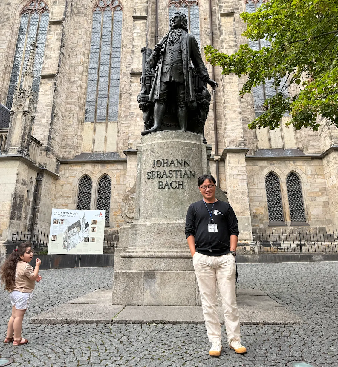 라이프치히 성토마스 교회에 위치한 존 세바스찬 바흐(Johann Sebatian Bach) 동상 앞에서. 이 감격스러운 포인트에서 의도하지 않게 함께 찍힌 여자 아이는 뱅크시(Banksy)의 ‘풍선을 든 소녀’를 연상케한다. 이쁘기두 해라