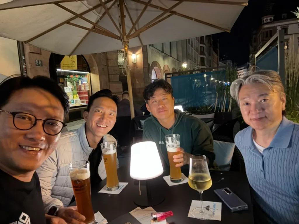 이렇듯 야외에서 있어빌리티 있는 곳에서 마셔야 맛이지. 그간 외진 곳의 호텔 내에서 참 후질구래하게 힘겹게 마셨다. 좌측에서부터 나, 여행 내내 오랜 시간 함께했던 교사 동생님, 그에 못지 않게 함께 보낸 룸메이트 형님, 나의 몸 관리 상태에 반성을 불러일으킨 아시아나 기장 형님과.