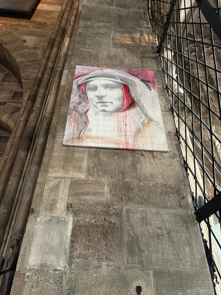 슈테판 대성당 벽에 붙어있는 정체 모를, 그리다 만듯한 그림. 그냥 딱봐도 현대화인데 묘하게 어울린다. 테레사 수녀인가? 여하튼 뽀대난다.
