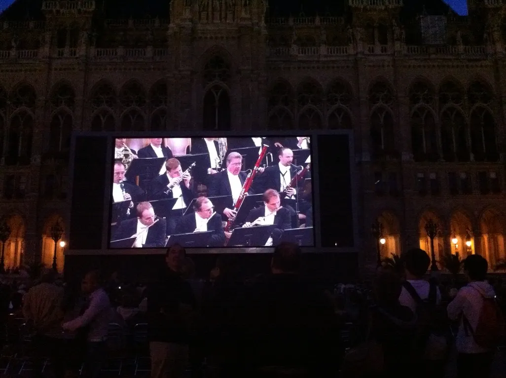 유럽 배낭 여행 당시의 Filmfestival am Rathausplatz. 상영 음악은 베토벤이었던 기억. 스크린 벽면은 시청 외벽이다. 이 광장 가장자리에서는 맥주를 팔았다.
